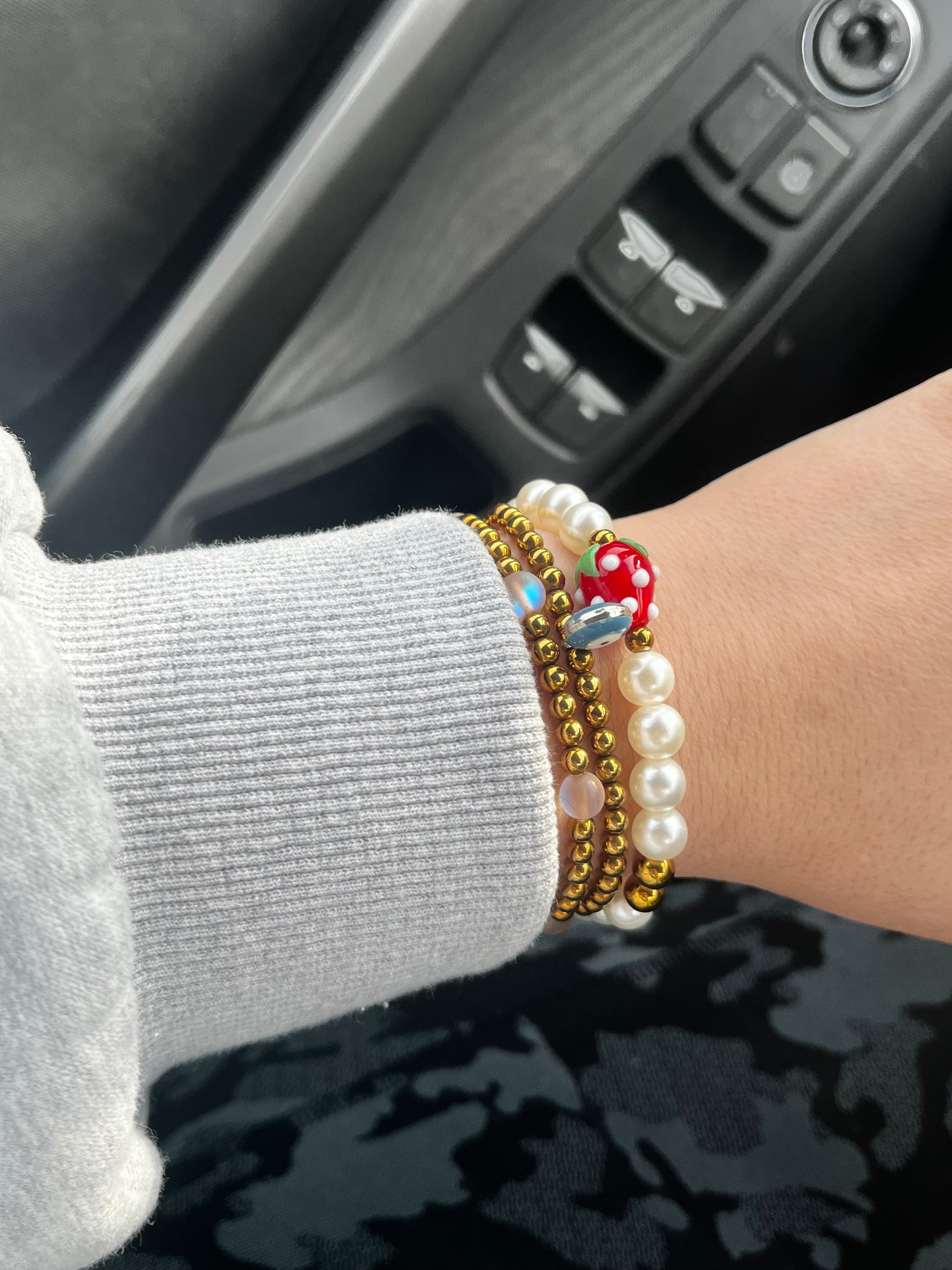 8mm faux pearls | Gold Hematite | Glass Blown Strawberryย