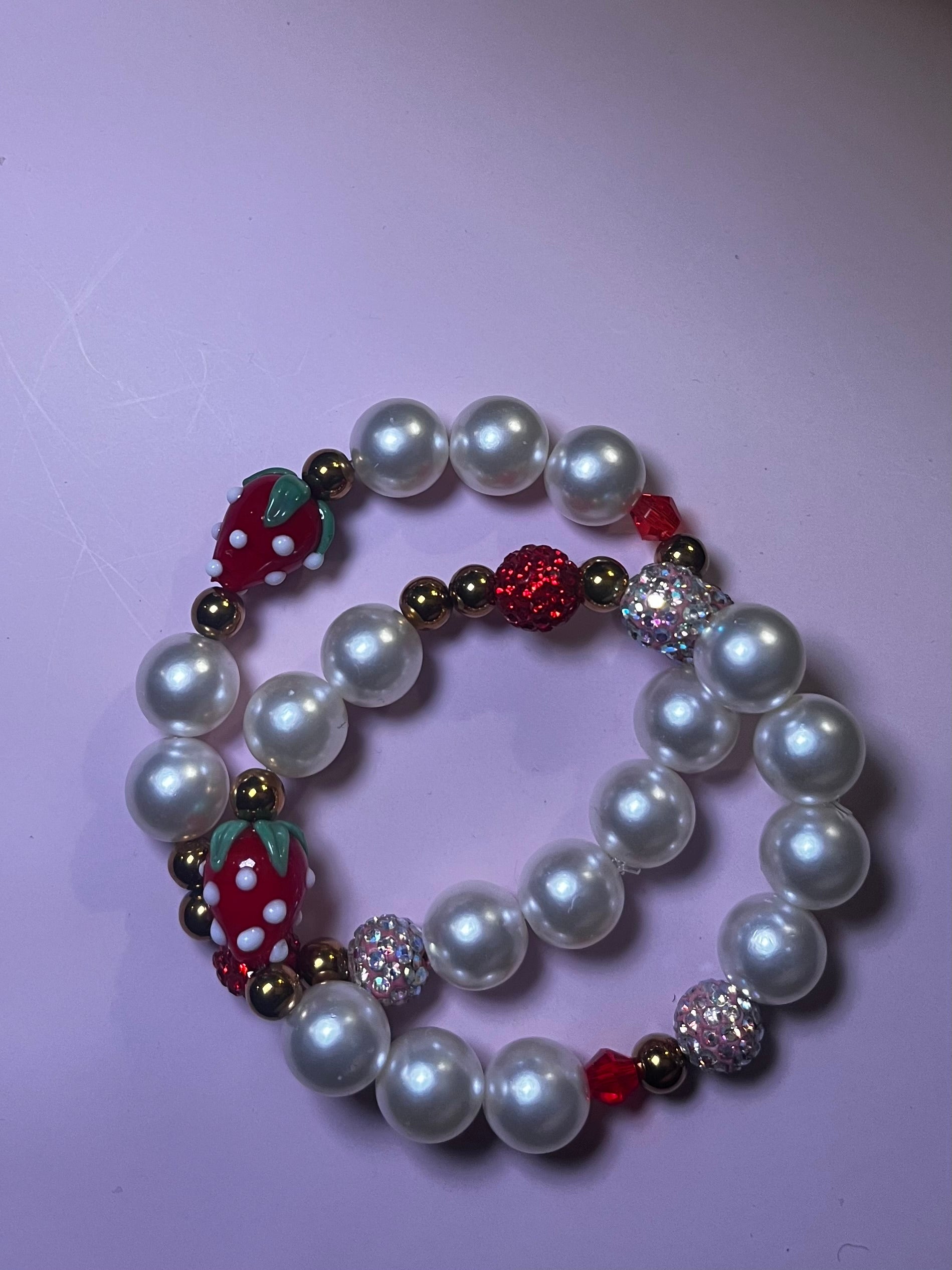 12mm faux pearls | Swarovski Crystal | Pink & Red Clay Rhinestone Crystals | Gold Hematite | Glass Blown Strawberry