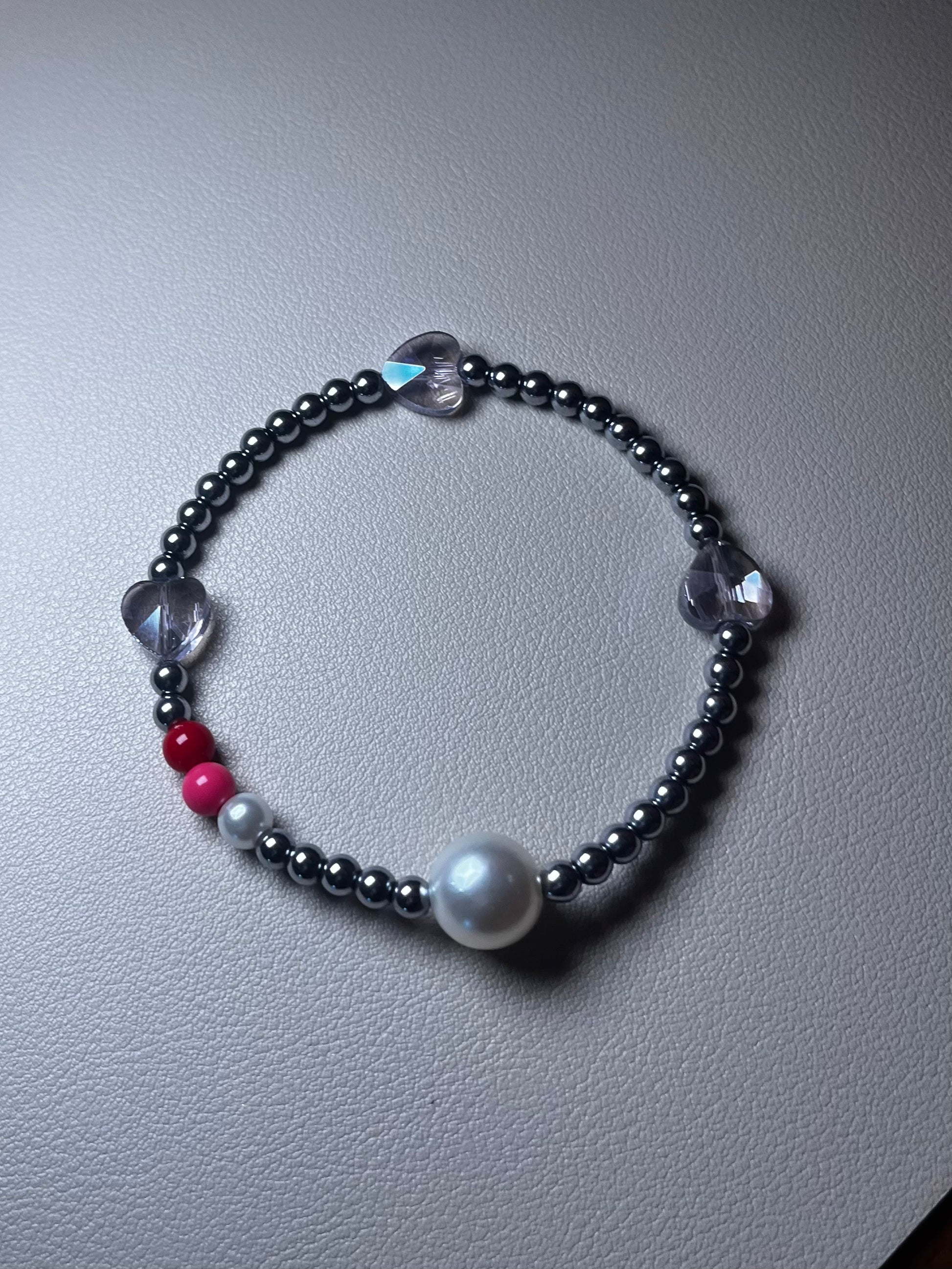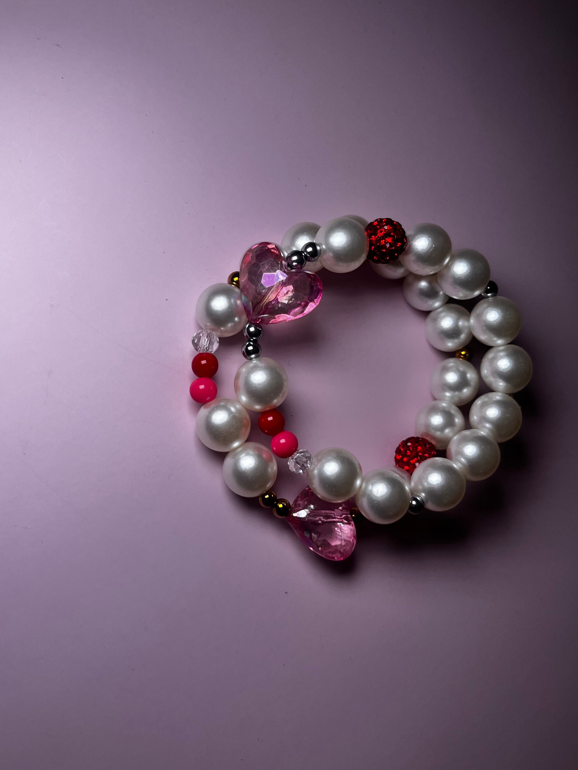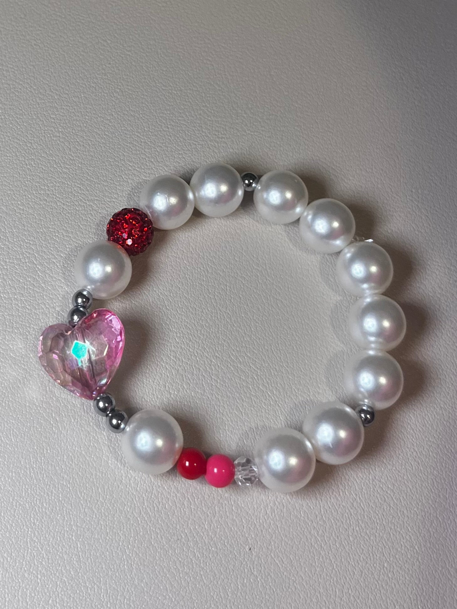 4mm silver | glass crystal hearts | pink and red acrylic beads | faux pearl