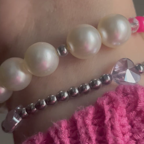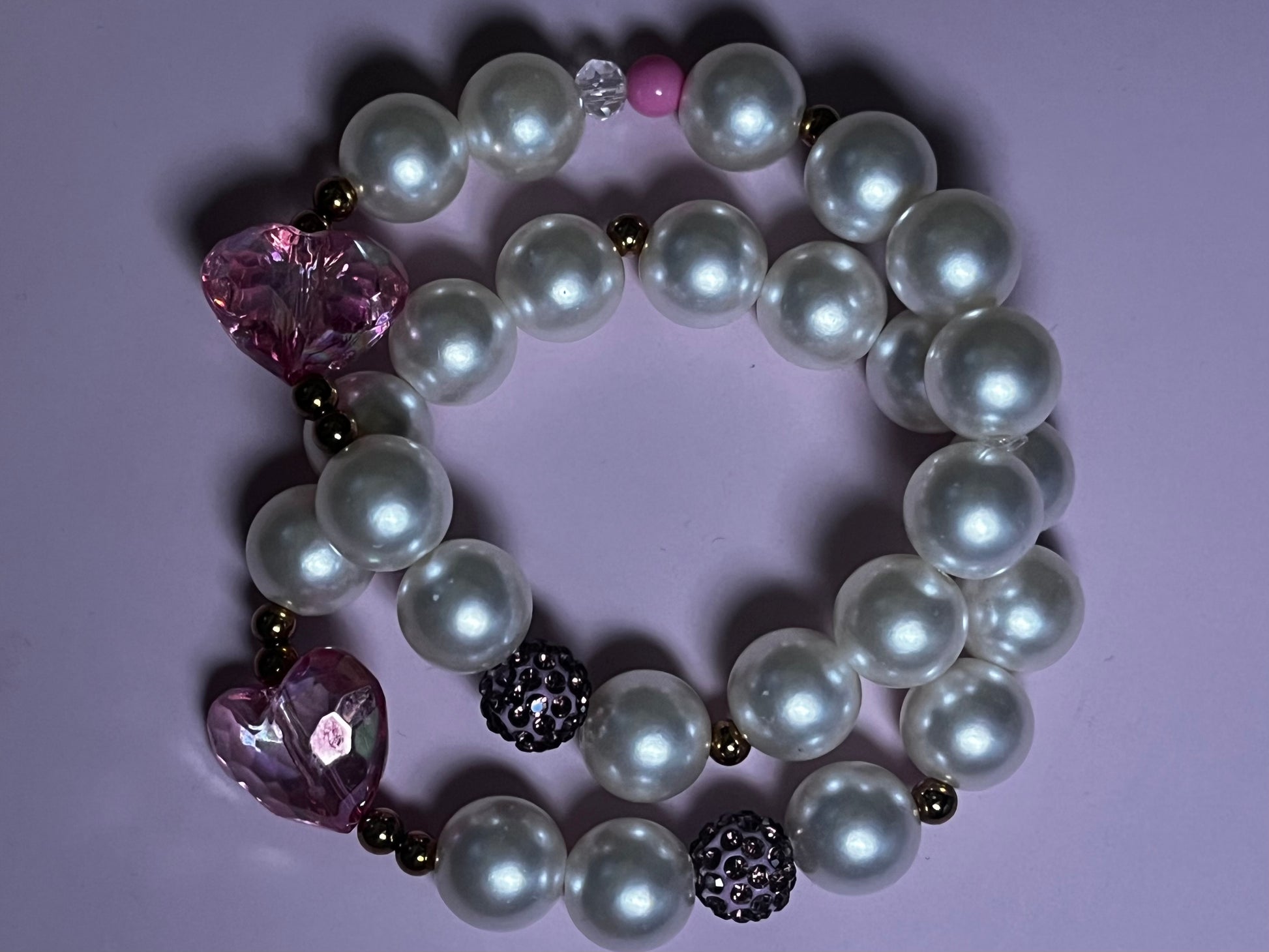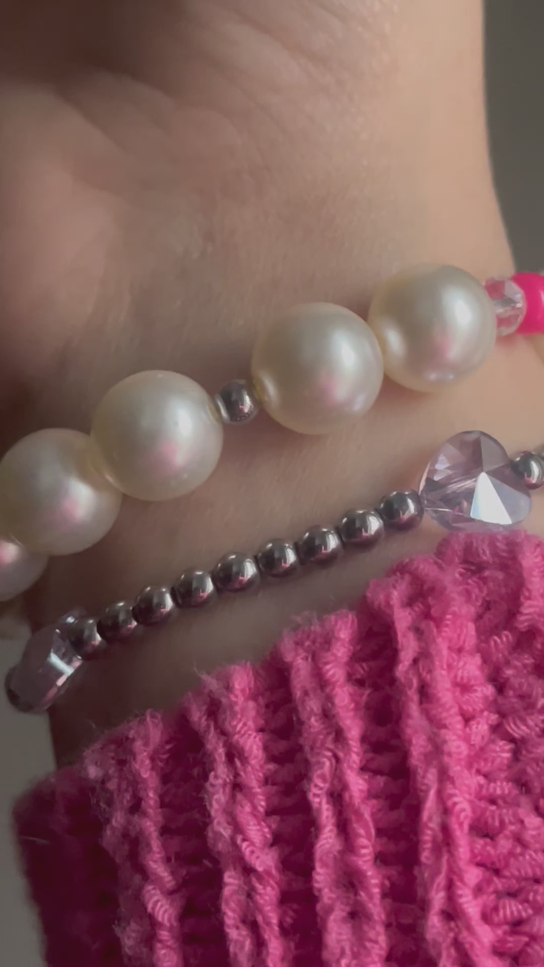 4mm silver | glass crystal hearts | pink and red acrylic beads | faux pearl