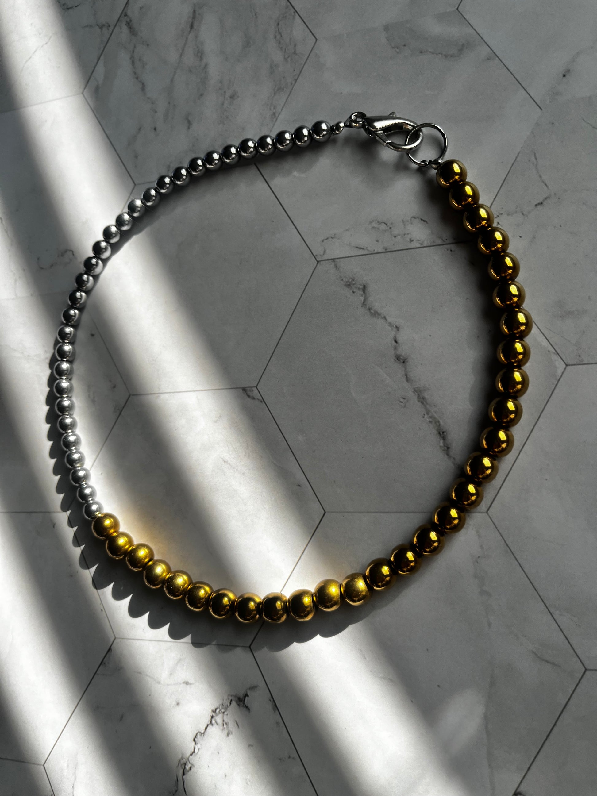 8mm Gold Hematite | 6mm silver platinum plated hematite