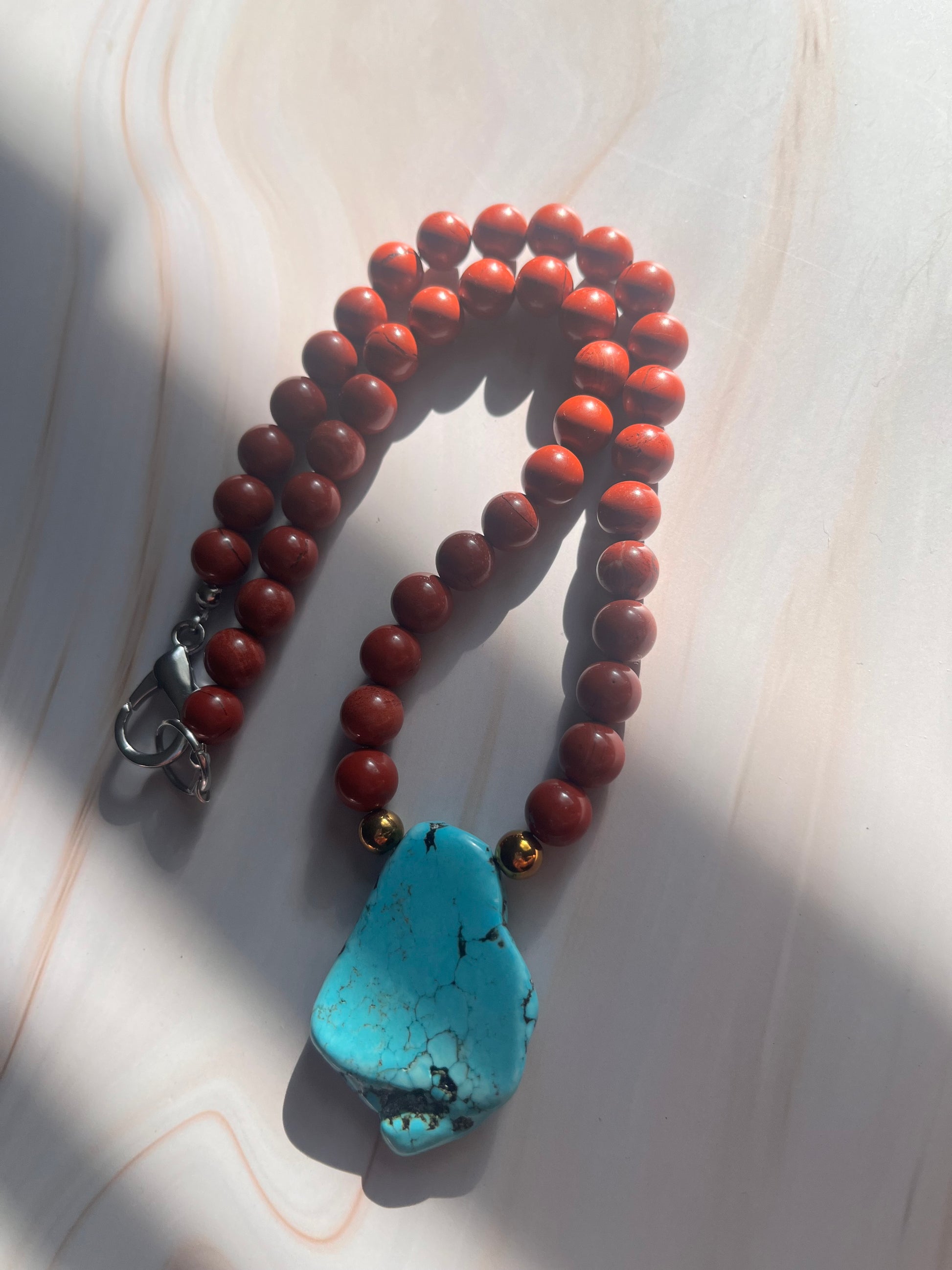 JASPER | 8mm Red Jasper | semi precious turquoise | 6mm gold hematite