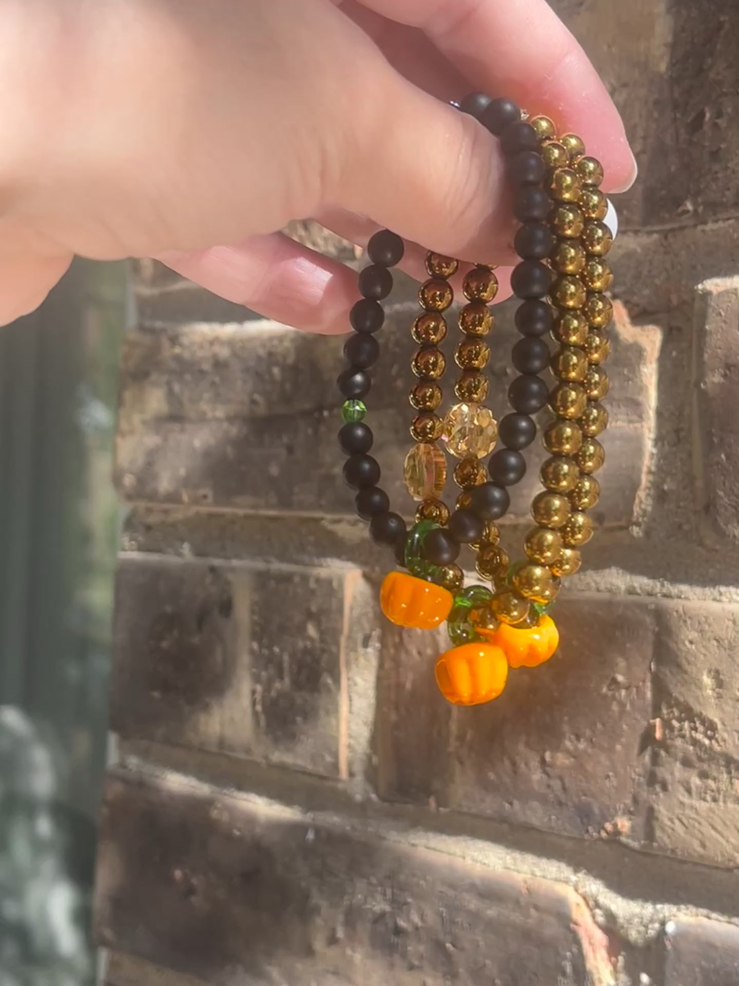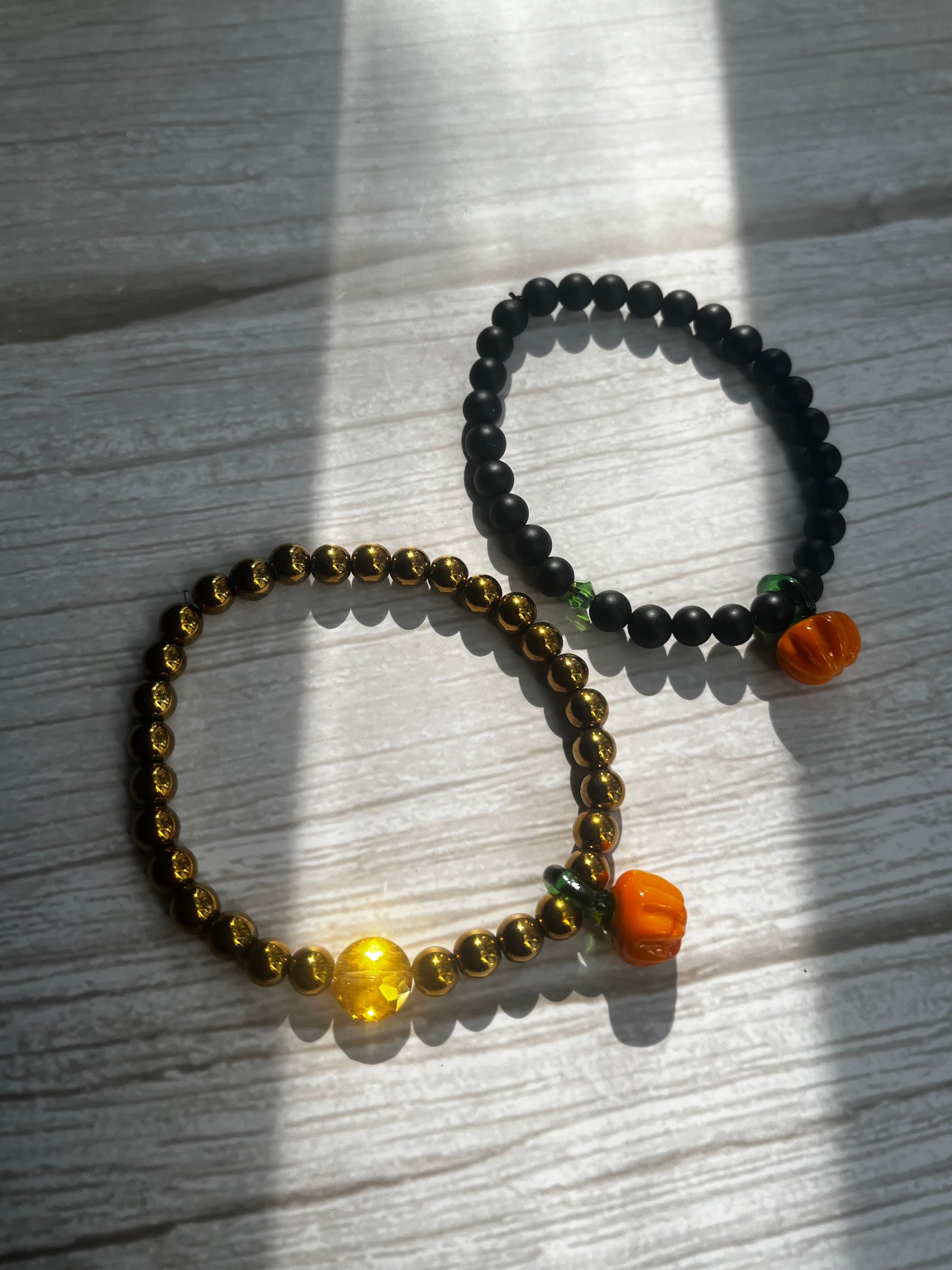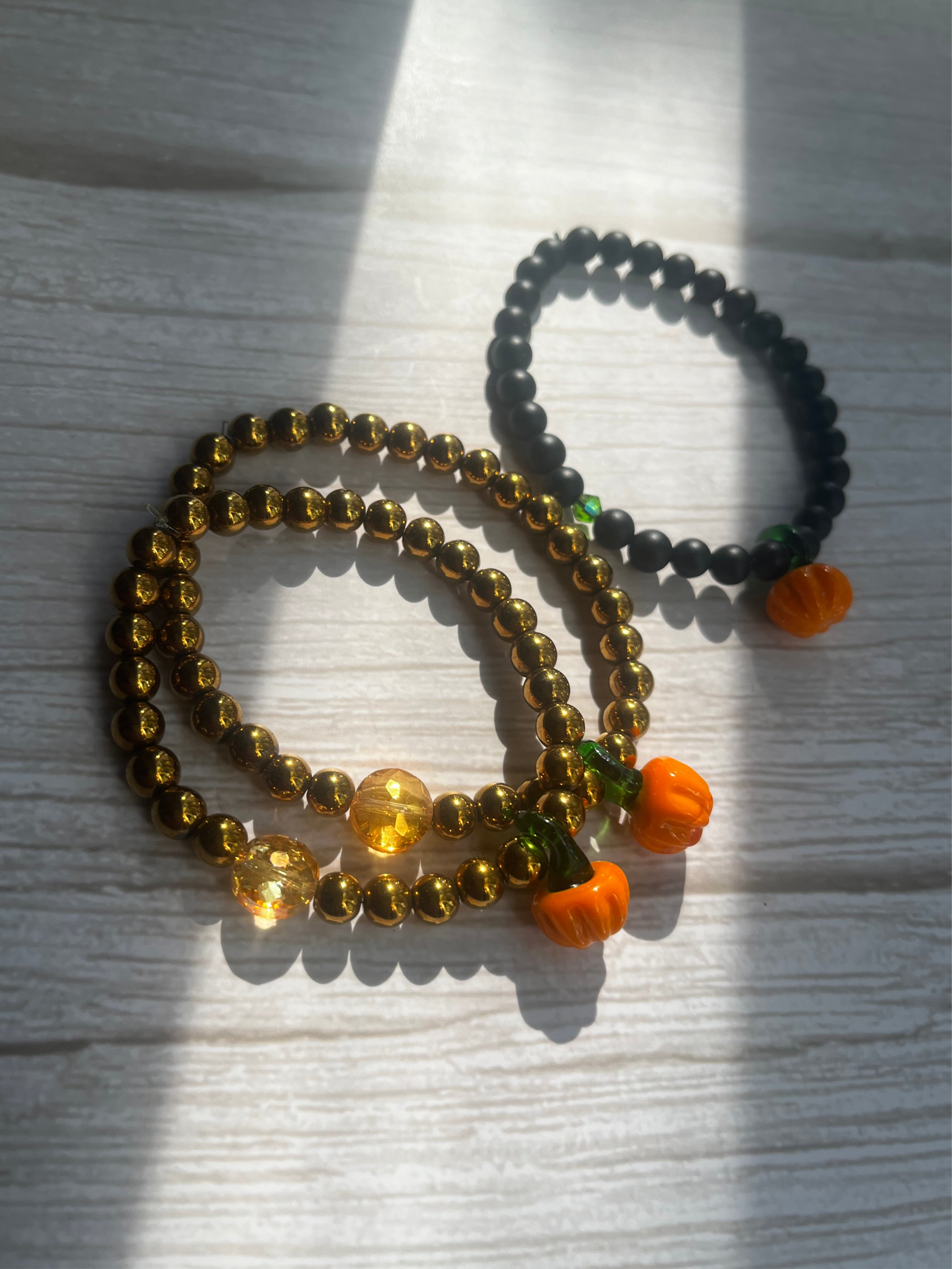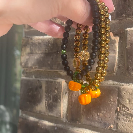 - 6mm matte black | green crystal | glass blown pumpkin